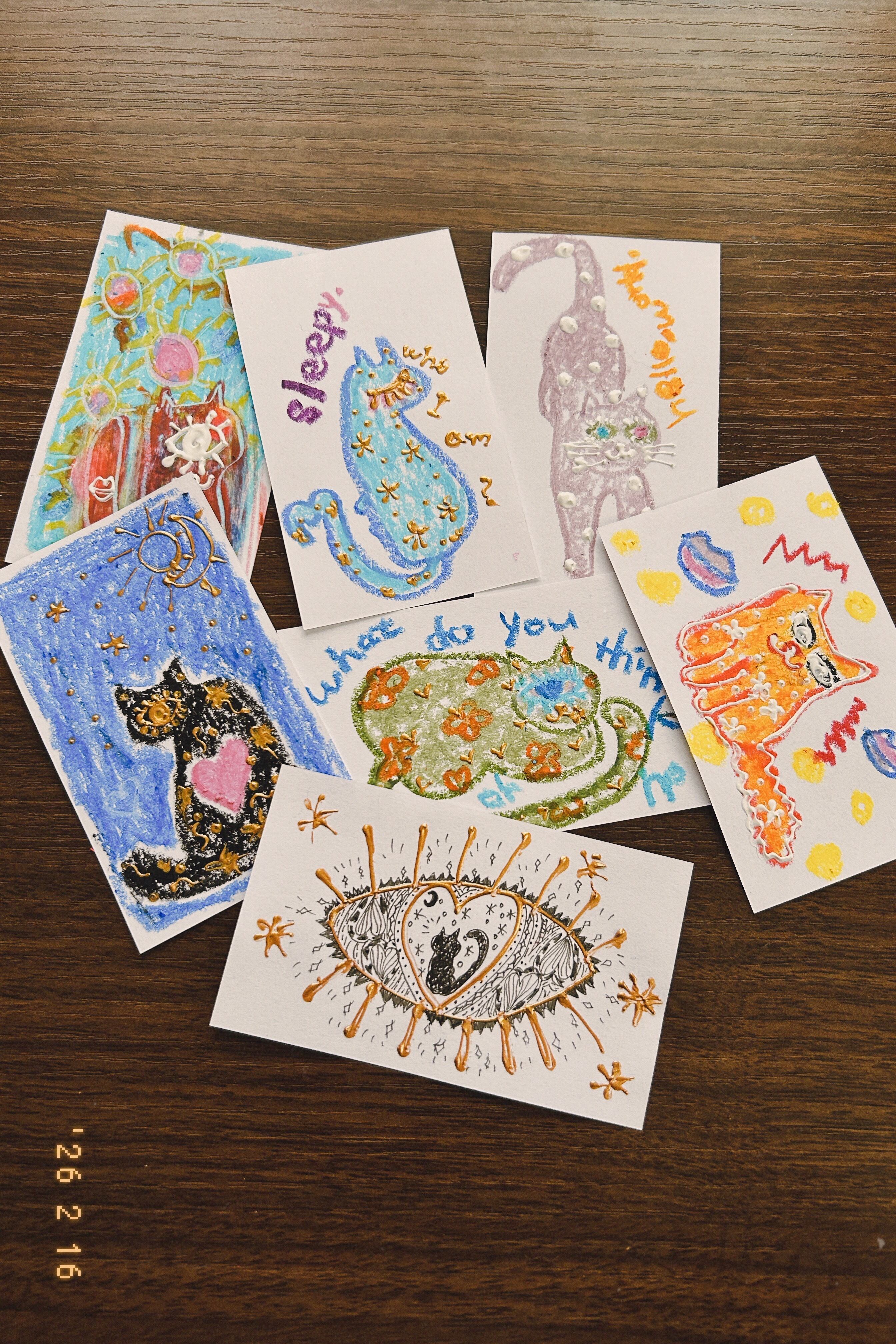 初代の変な猫の絵「にゃこ」から新たに生まれた宇宙ねこシリーズ