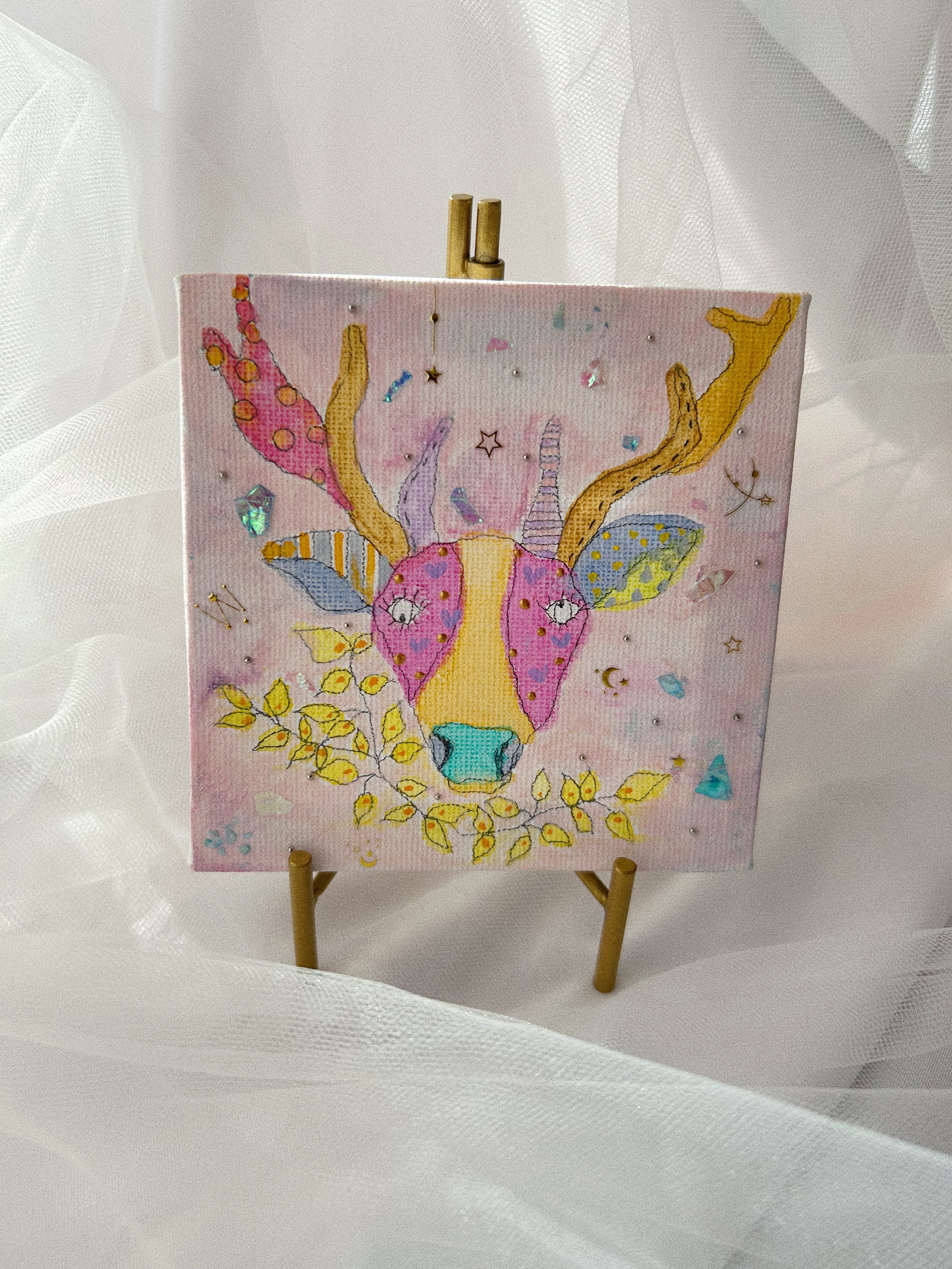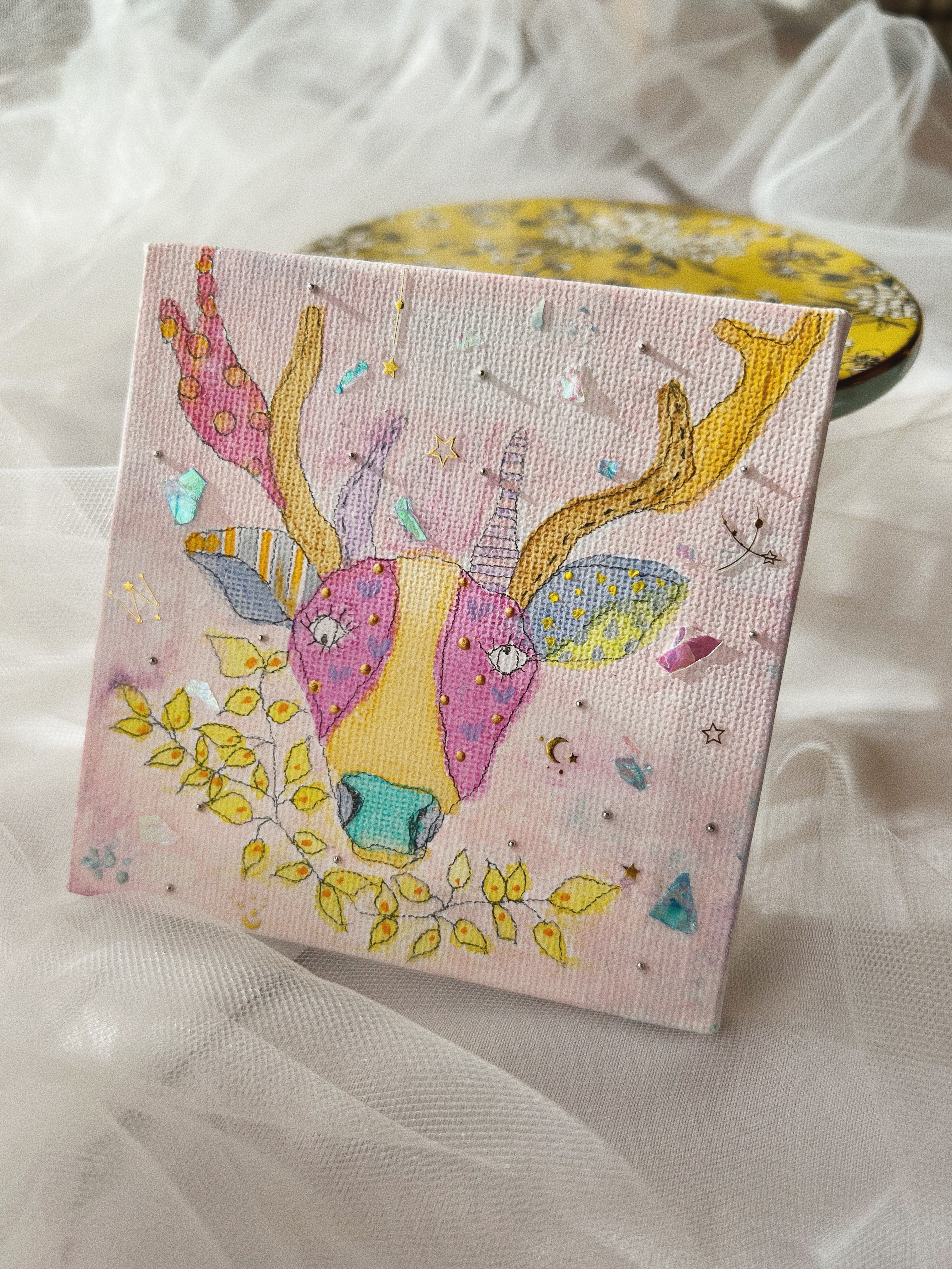 ・素材 :ネイル用パーツ、シール、アクリル、水彩絵の具